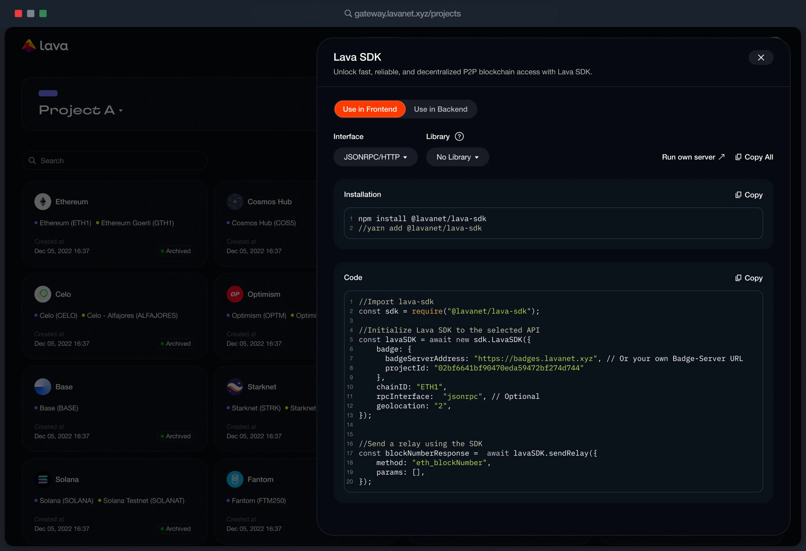 Lava is fully peer-to-peer with no single point of failure. If the Lava chain halts, developers can always connect to node providers.