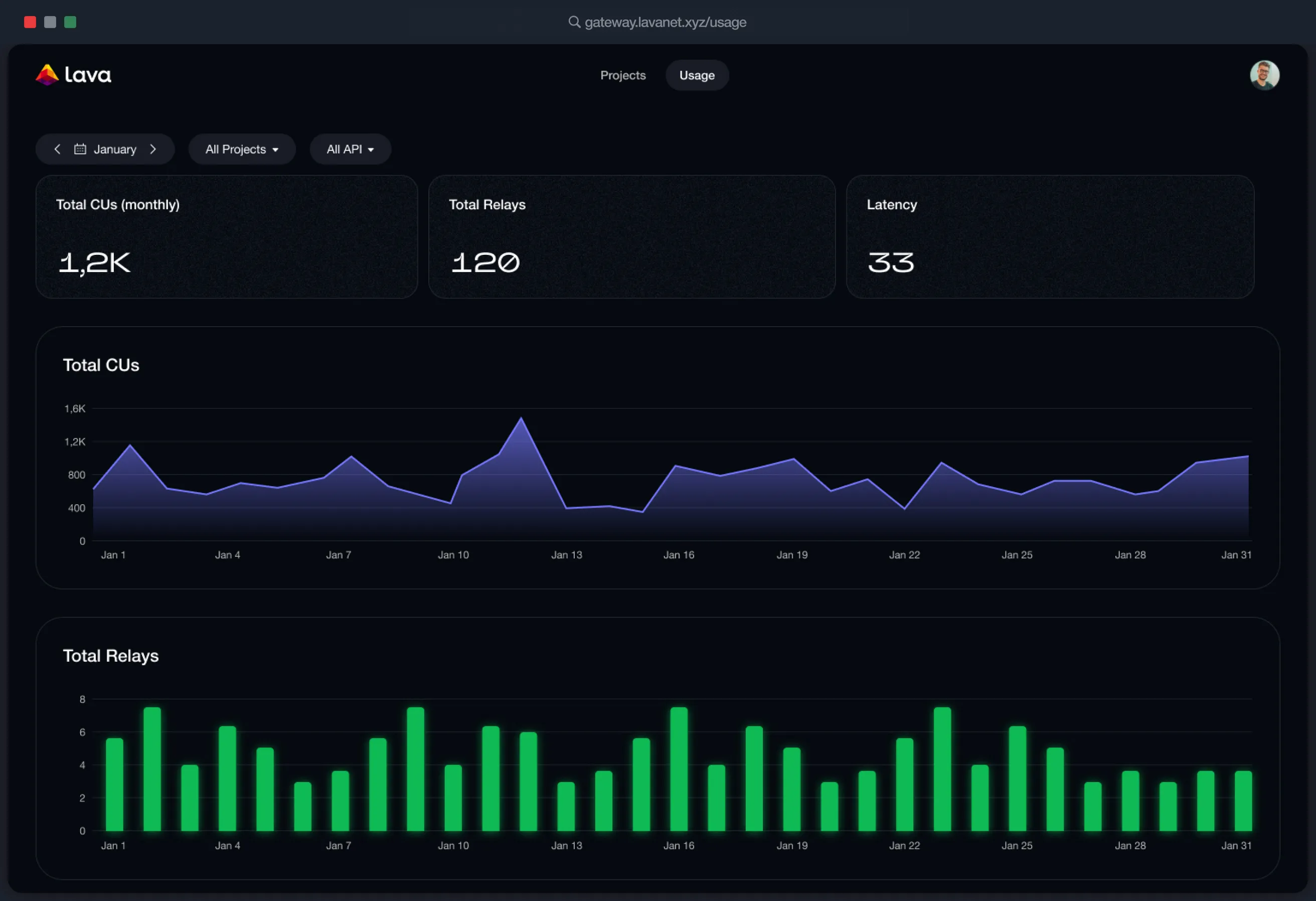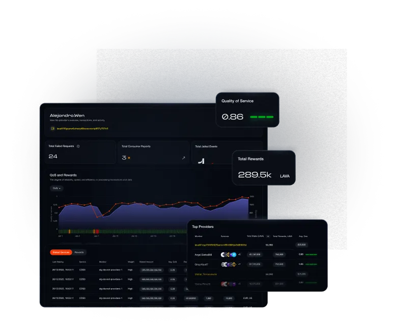 Lava is a modular network which blockchains plug into to scale and optimize RPC & APIs. Requests are routed to the best available provider, giving developers and users optimal service.